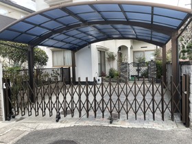 OBのお客様です。誰でもすぐ敷地内に入れないように 何か良い商品はないでしょうかと ご依頼を頂きました。弊社からはYKKの伸縮門扉レイオスをご提案。車の出入りも出来 開閉も軽く 折りたたみも出来るので 大変喜んで頂きました。